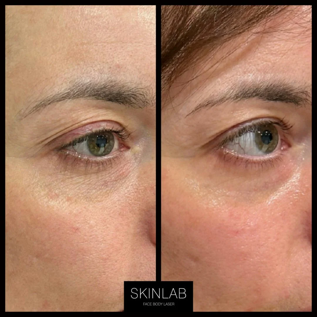 All 3 sessions were carried out with a low energy setting - despite this, she did have a few days of downtime post treatment. Her first session was carried out in November and these are the results so far. Skin tightening that has resulted in lift of the 'hooded' eyelids.